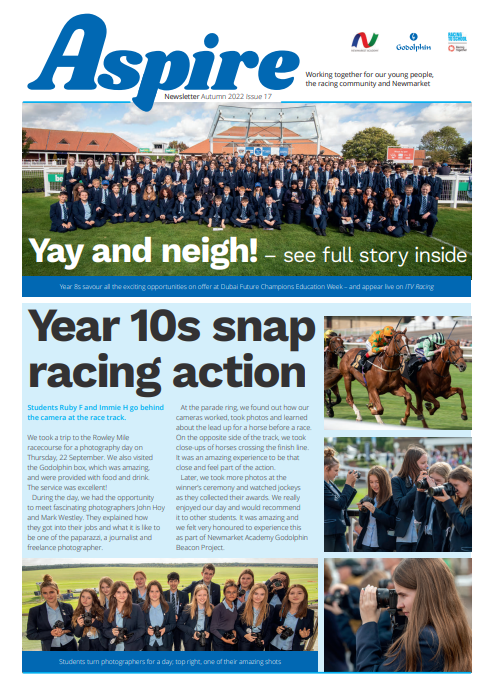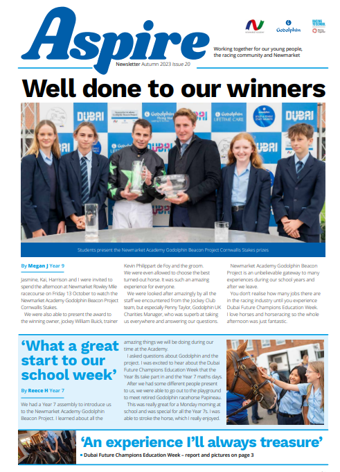 “Godolphin is delighted and proud to be sponsors of The Newmarket Academy Godolphin Beacon Project. The project enhances learning, raises ambition and aspiration and enables students at the Academy to access a wide range of career pathways.”