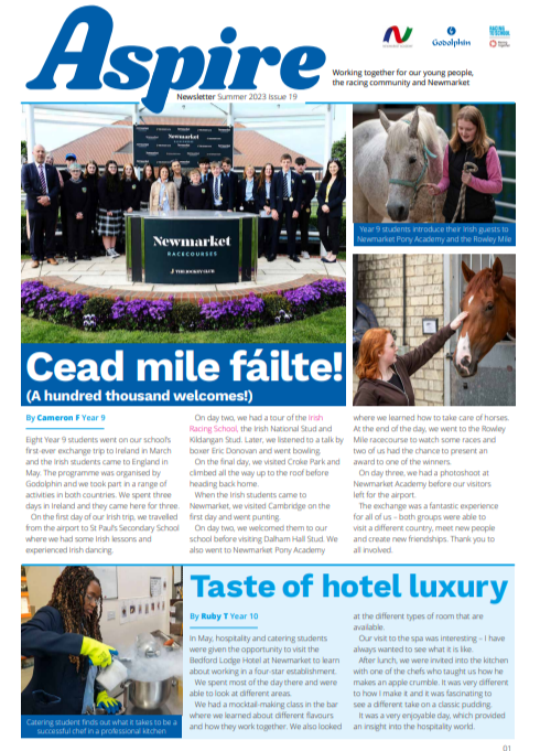 The Newmarket Academy Godolphin Beacon Project (NAGBP) was launched in September 2016 as part of a shared vision between Newmarket’s largest employer, Godolphin, and our Academy to support and develop the career progression pathways of students in the local community of Newmarket.